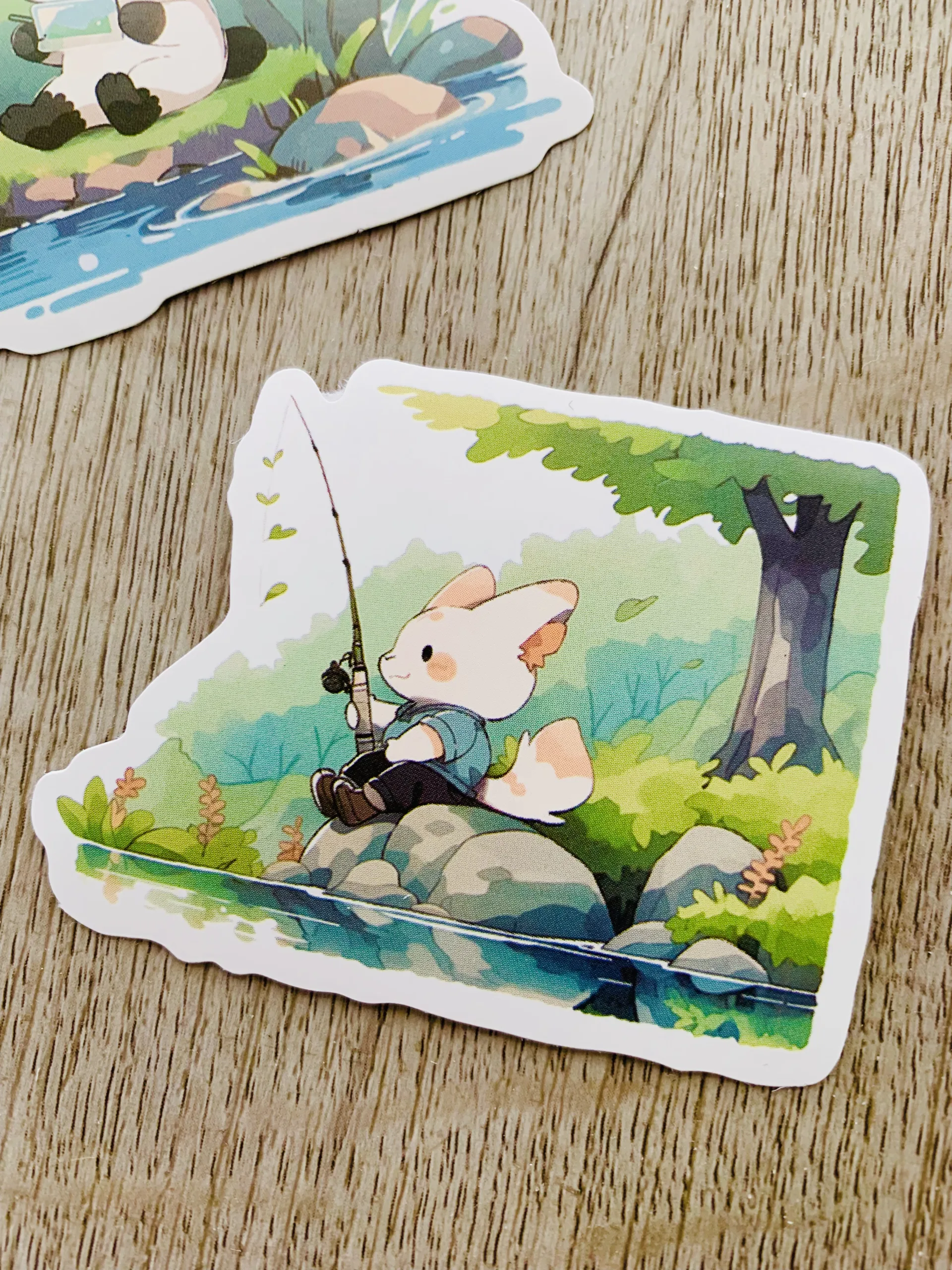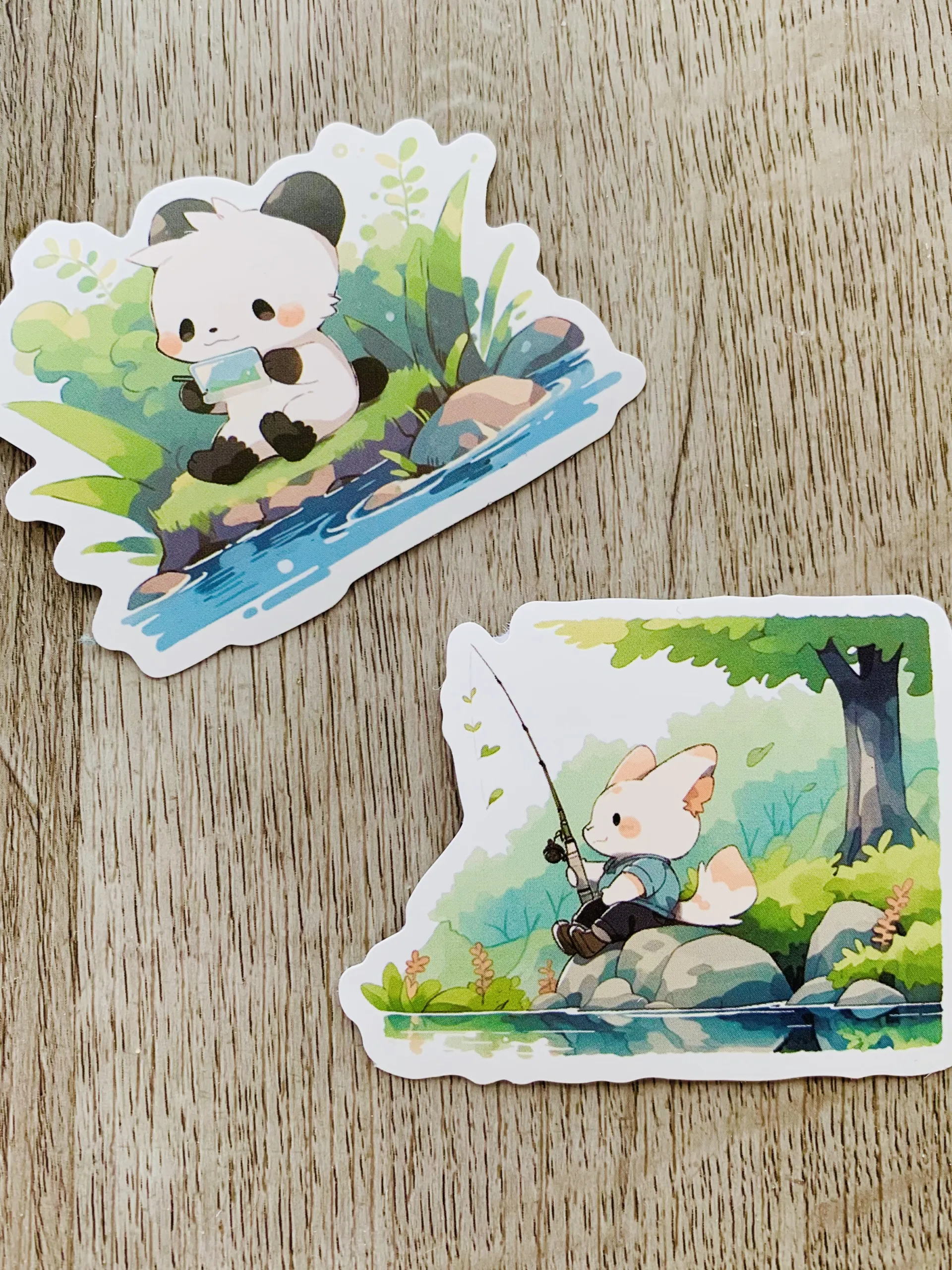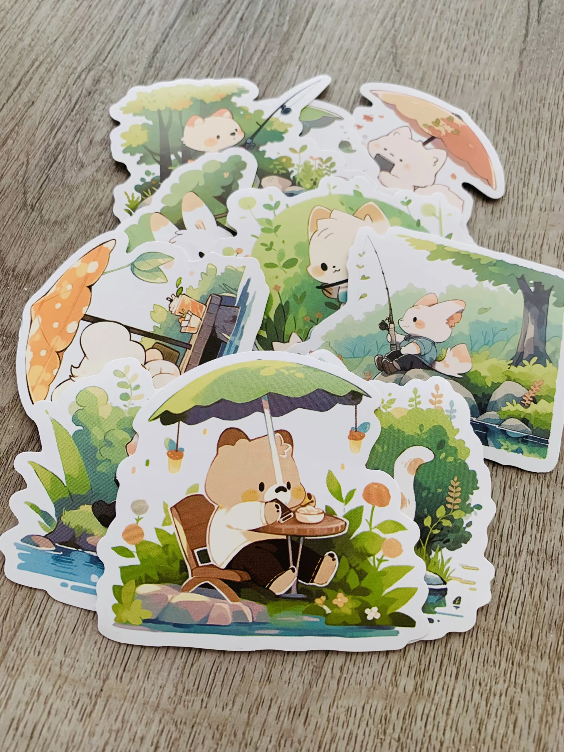 Stickers de tamaño grande con ilustraciones de animalitos en el bosque.